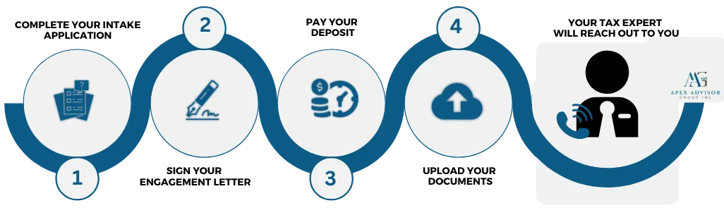 Fast and simple. Just complete your intake application, sign your engagement letter, and schedule your appointment to speak with your dedicated tax specialist.